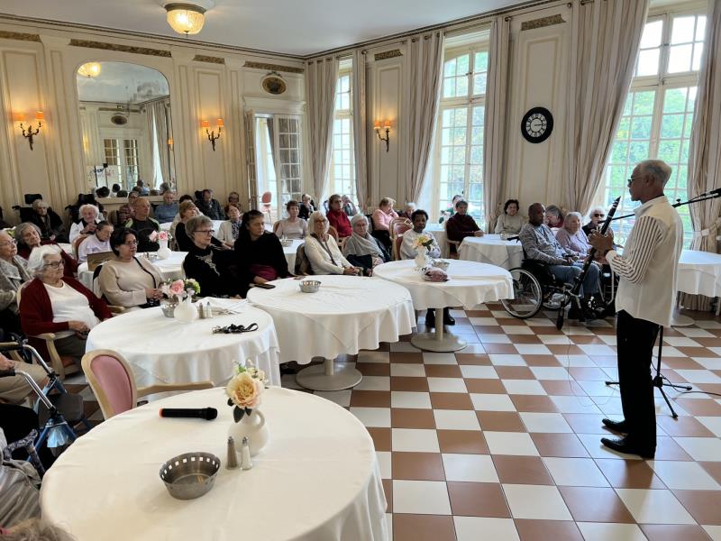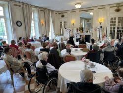 Résidents, familles et soignants se sont laissés emporter par la musique : petites robes virevoltantes et pas de danse improvisés ont illuminé cette belle après-midi. Un moment festif et chaleureux qui restera gravé dans les mémoires.