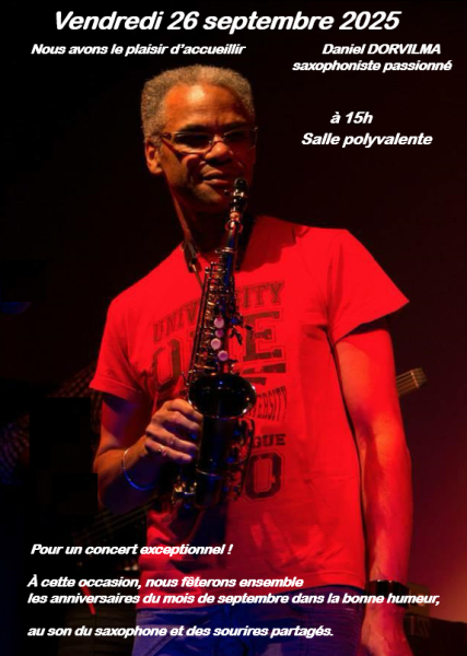 Nous avons eu le plaisir d’accueillir le saxophoniste Daniel Dorvilma, dont les notes de jazz et de rock ont enchanté l’assemblée.