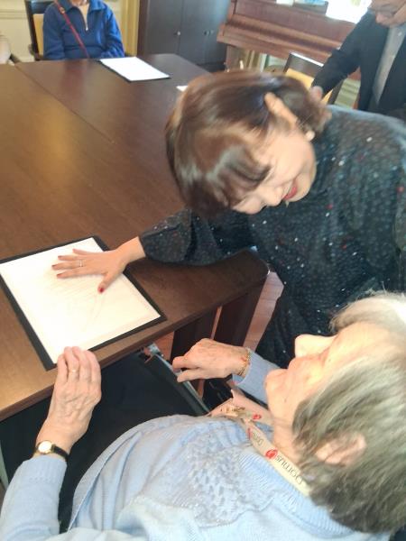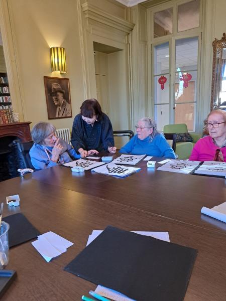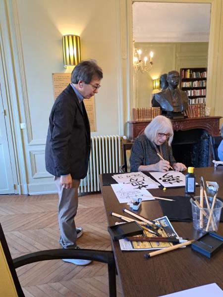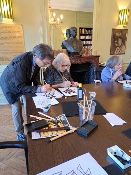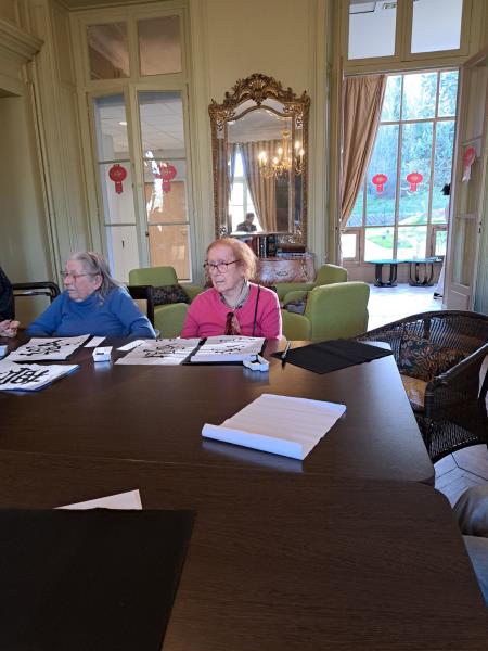 L’après-midi, nous avons eu l’honneur d’accueillir deux maîtres de la calligraphie chinoise pour un atelier exceptionnel. Les résidents ont pu écrire leur prénom et s’initier à cet art délicat et apaisant.