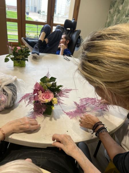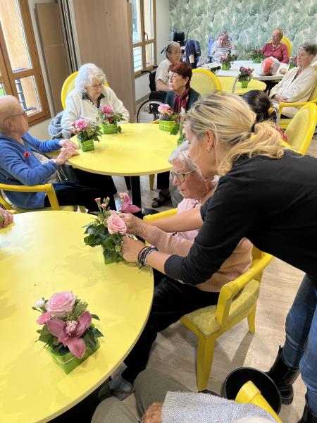 À l’occasion d’Octobre Rose, nos résidents ont laissé parler leur créativité avec Marie de Pure Émotion. Roses, orchidées, œillets,feuilles de lierre et asparagus se sont mêlés pour créer des compositions pleines de couleur et de poésie, célébrant ce mois de sensibilisation avec délicatesse et élégance.