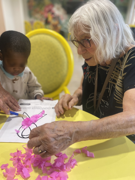 Un joli moment de partage entre les enfants de la MAM et nos résidents, réunis pour un atelier créatif autour d’Octobre Rose. Ensemble, ils ont réalisé de magnifiques collages, remplis de douceur et de couleurs. Un instant simple et sincère, immortalisé en photo, où petits et grands ont uni leurs talents pour soutenir la cause du cancer du sein.