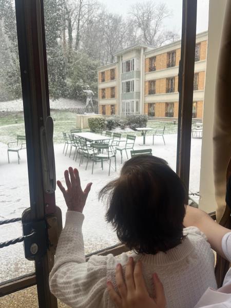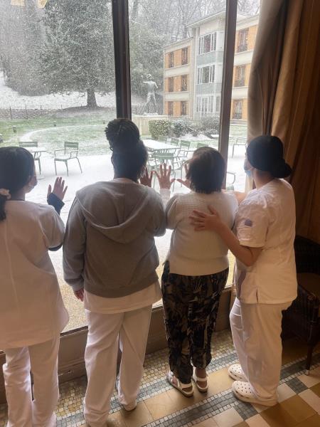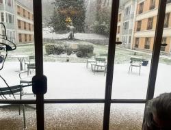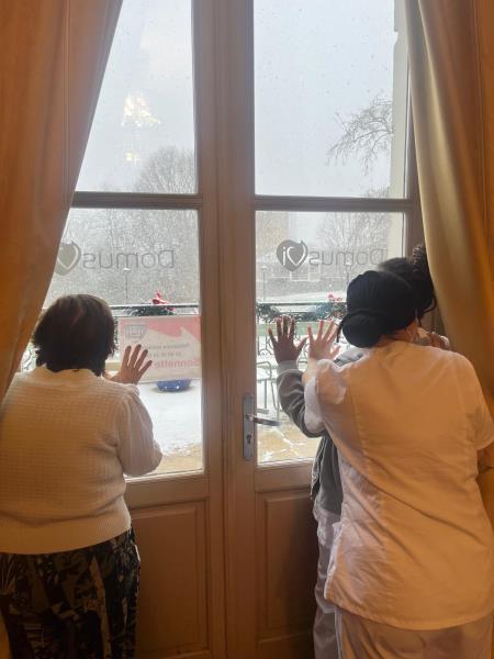 Cette année, la neige est tombée sur la résidence et a fait briller les yeux de nos résidents comme ceux d’enfants. Flocons sur les vitres, éclats de rire et émerveillement partagé avec le personnel… un vrai moment magique !