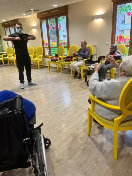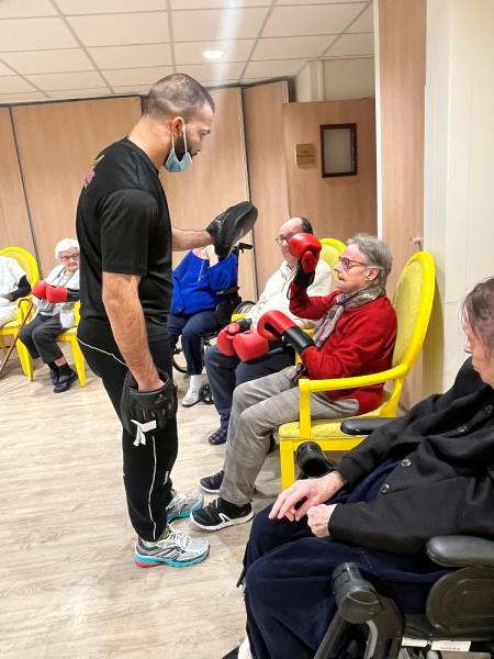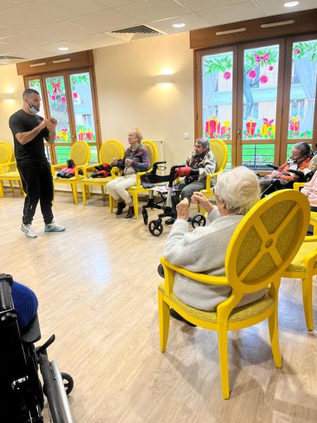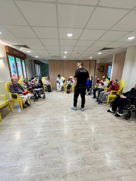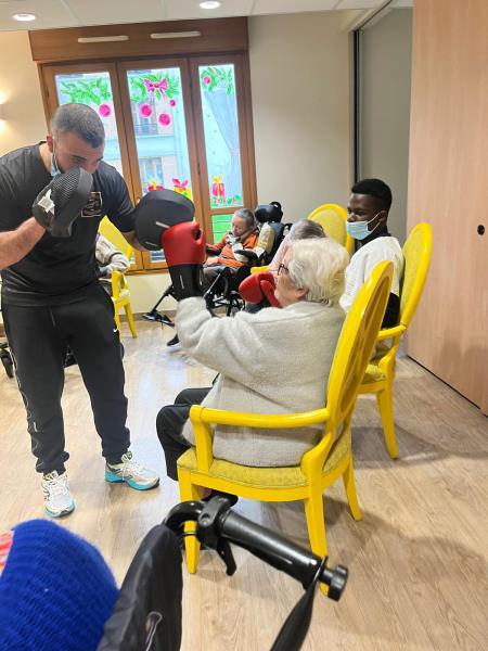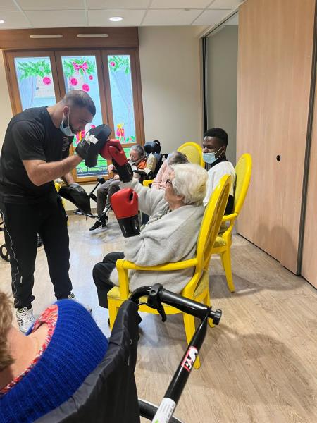 L’atelier boxe avec Riyad a été accueilli par nos résidents comme une véritable bouffée d’air, un concentré d’énergie, de jeunesse et d’enthousiasme.