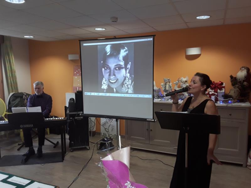 Pour cette belle occasion des 'anniversaires du mois de janvier 2020, nous avons accueilli le groupe NAOS, un pianiste et une chanteuse pour une animation musicale (des chansons françaises des années 1960 sous forme de quizz). Un mini concert qui a mis beaucoup de gaieté et qui a ravivé la mémoire de nos résidents.