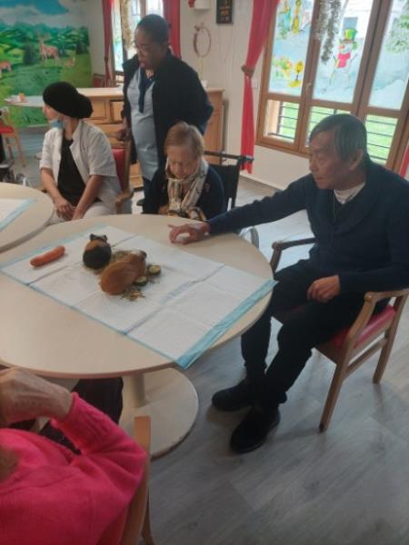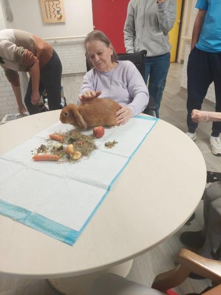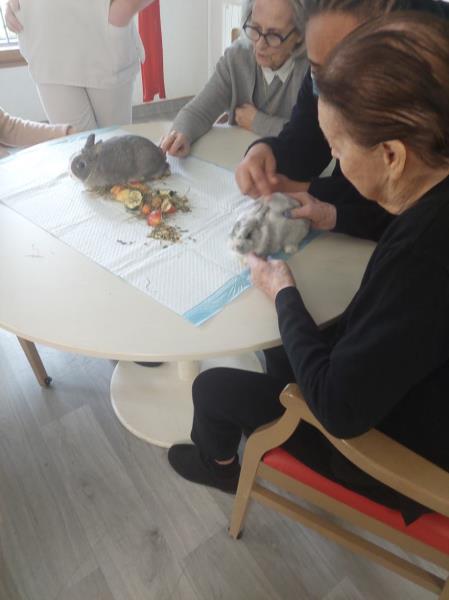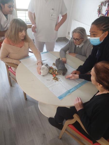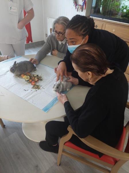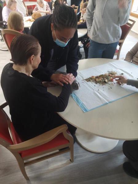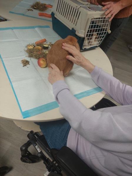 Médiation animale vendredi matin à l'UHR, les résidents ont appréciés ce moment de connexion avec les animaux (lapin, cochon dinde) avec des sourires , regards😃