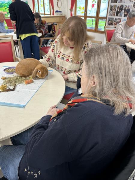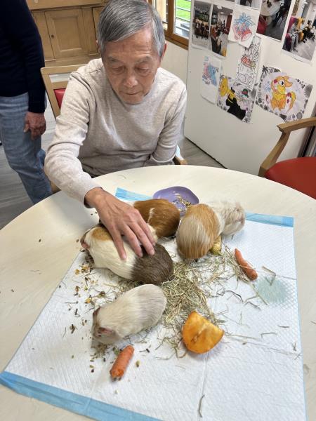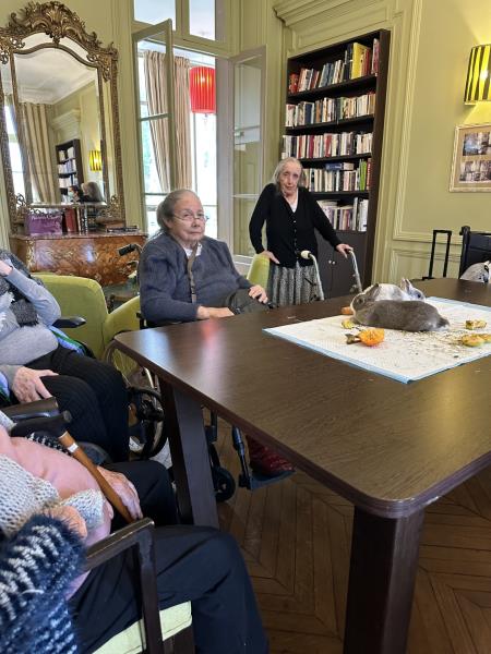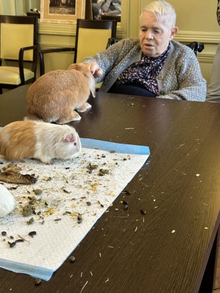 Une belle séance de médiation animale a récemment illuminé notre résidence. Cochons d’Inde, lapin et petits chiens étaient présents aux côtés de la médiatrice, qui a su transmettre avec passion son savoir-faire et son savoir-être.