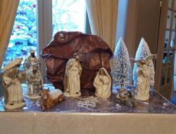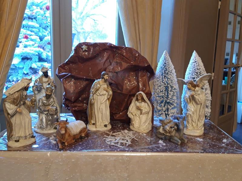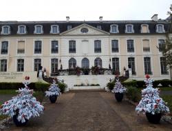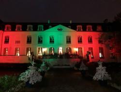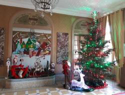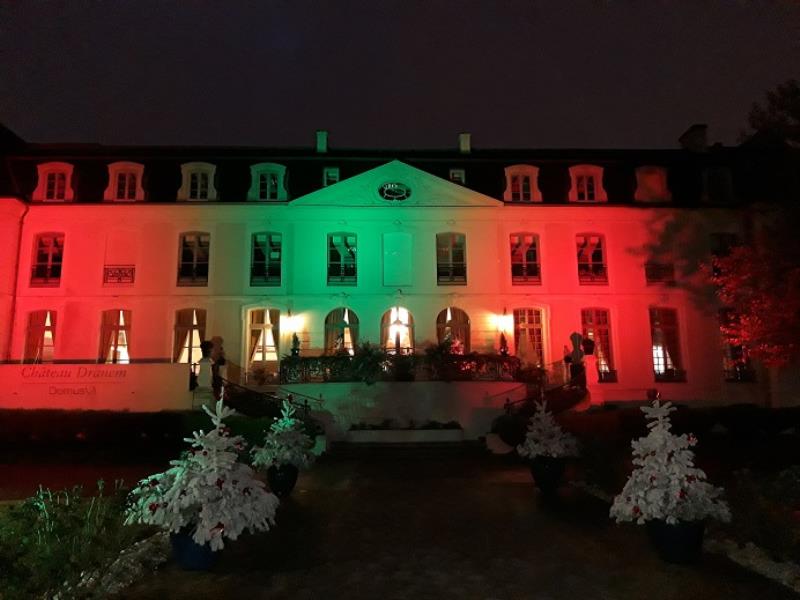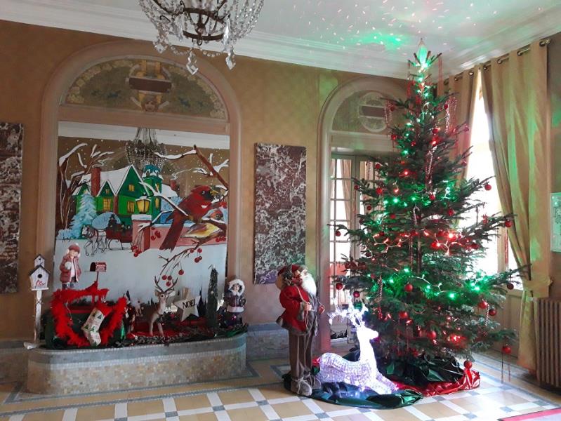 Cette année les résidents ont souhaité pour l'accueil d'y voir une crèche et une décoration dans les tons rouge et vert, y compris sur la façade du château.