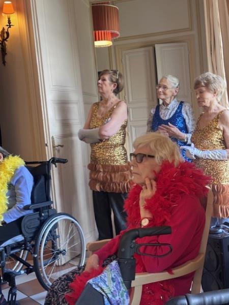 Plumes, paillettes et énergie débordante ont transformé la fête en véritable show cabaret. Les résidents ont brillé sur scène et ont eu le plaisir de revivre l’esprit du célèbre Moulin Rouge, aux côtés de Coco Jo, pour un spectacle festif, joyeux et inoubliable.