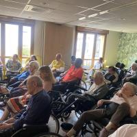 Publiée le 16/06/2025Le 6 juin, nous avons fêté les anniversaires de mai en compagnie de Monsieur Picq, venu spécialement pour un café-chanson. Ce moment festif et en musique a été très apprécié par nos résidents ! Lire la suite