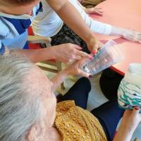 Publiée le 27/08/2020C'est dans la joie autour d'une table que les résidentes relatent leurs souvenirs de couturière, les différentes marques de machines utilisées à leur époque. Et beaucoup d'émotion pour leurs premiers essais, leurs premières retouches... tout en s'appliquant à la confection de petites pochettes. Lire la suite