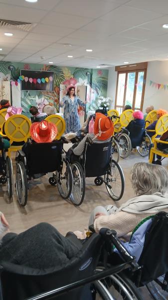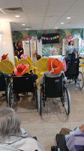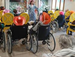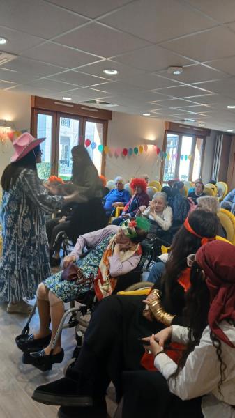 Entre rires, couleurs et joie partagée, les résidents étaient très heureux de vivre ce moment. (Les femmes de la communauté juive de la synagogue de Ris-Orangis étaient également présentes, vêtues de magnifiques costumes et ont expliqué avec enthousiasme l’histoire d’Esther.) Les résidents ont été très attentifs et intéressés.