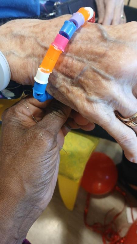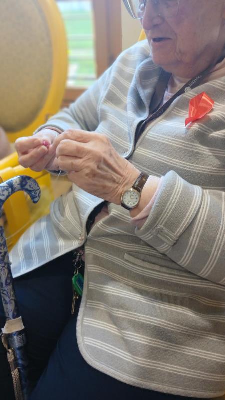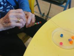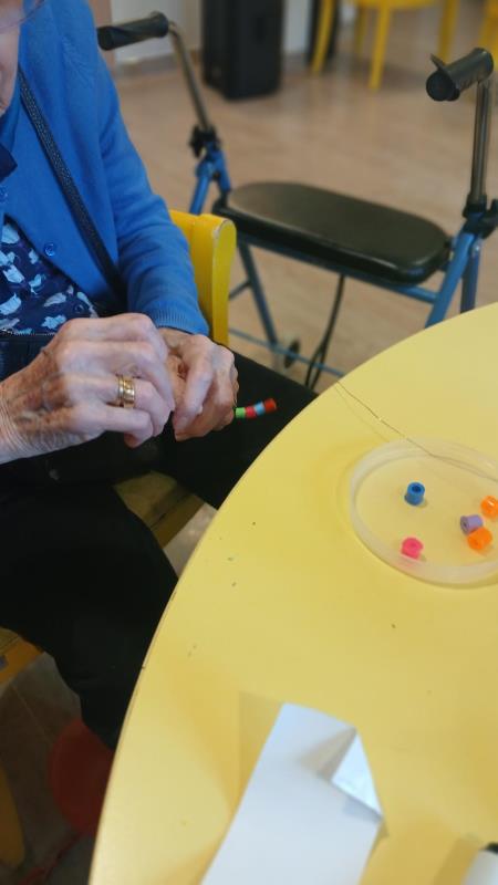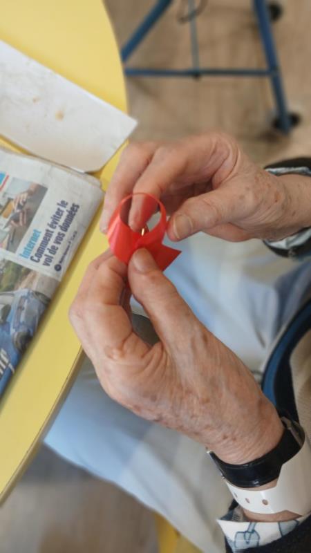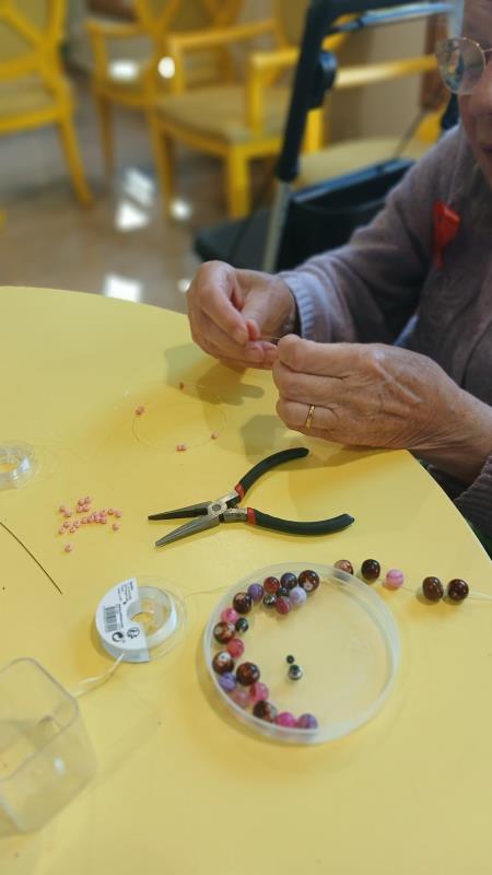 La résidence s’est parée de rose ! Gonflage de ballons, choix de poèmes pour la marche solidaire, et surtout, confection de bracelets destinés aux patients en chimiothérapie de la Clinique Pasteur.