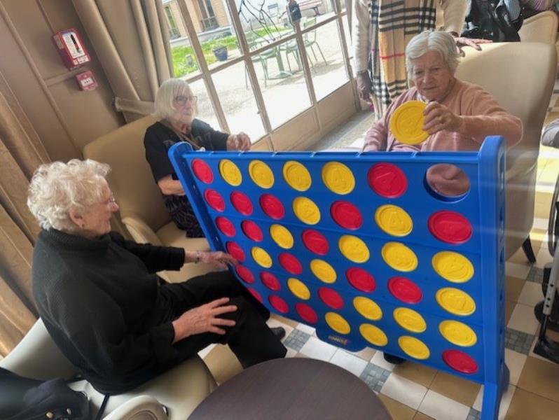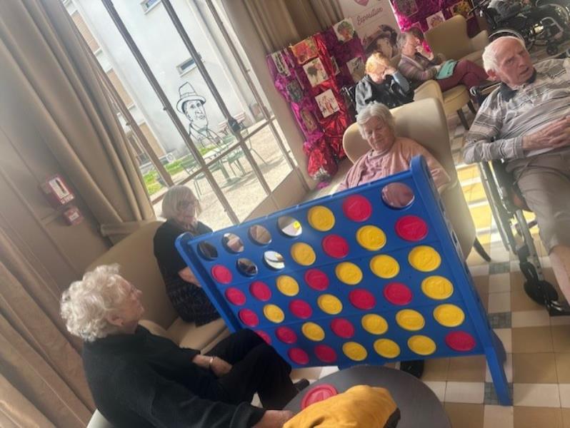 Un tout nouveau jeu Puissance 4 géant est désormais mis à disposition des soignantes et des résidents. Adapté et facile à manipuler, il permet à chacun de participer, de stimuler la mémoire et la concentration tout en partageant des moments ludiques et conviviaux. Une belle occasion de jouer ensemble et de renforcer les liens au quotidien !